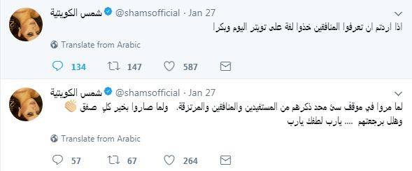 أثارت تغريدات الفنانة الكويتية شمس جدلاً واسعاً، بعدما اعتبر البعض أنّها موجّهة للفنانة الإماراتية أحلام.