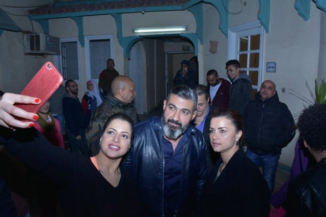 وقام أبطال العمل بتقطيع قالب الحلوى قبل بدء التصوير، وحرصوا على التقاط الصور التذكارية مع بعضهم .