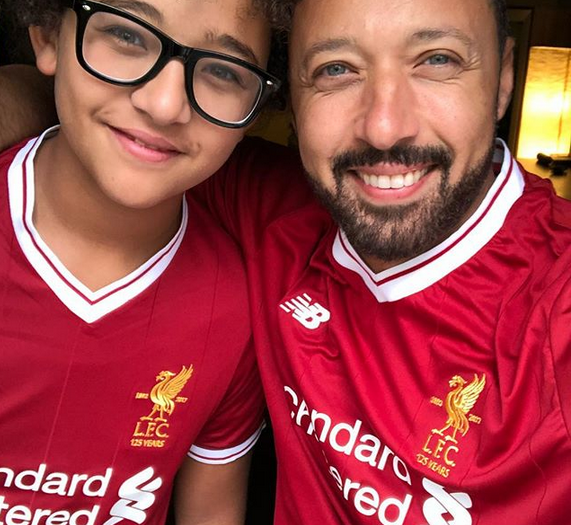 وتعليقاً على الصورة كتب الممثل: "مع ابني. فخور جداً بك يا ر جل". وتبيّن أن الصورة التقطت لهما أثناء حضورهما مباراة لفريق ليفربول الإنكليزي.