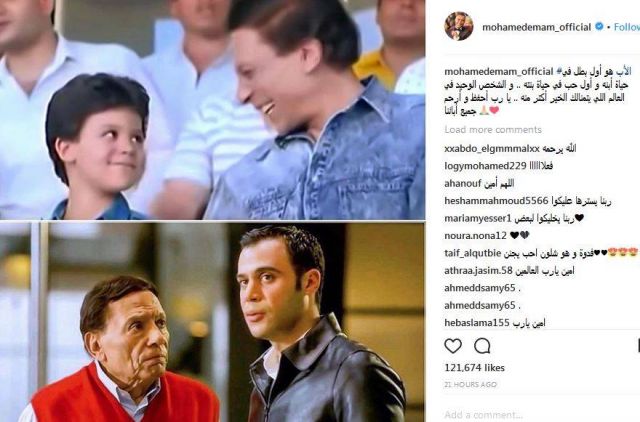نشر الممثل المصري محمد إمام صورة له مع والده النجم عادل إمام على صفحته على "انستغرام" ووجه من خلالها رسالة مؤثرة له.