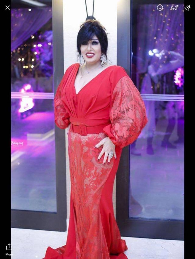 وظهرت الفنانة بفستان أحمر ضيق وطويل مع اكسسوارات ضخمة من اللون الفضي، واكملت اطلالتها بمكياج قوي وأحمر شفاه أحمر ناري، لاقى إعجاب الالاف من متابعيها.