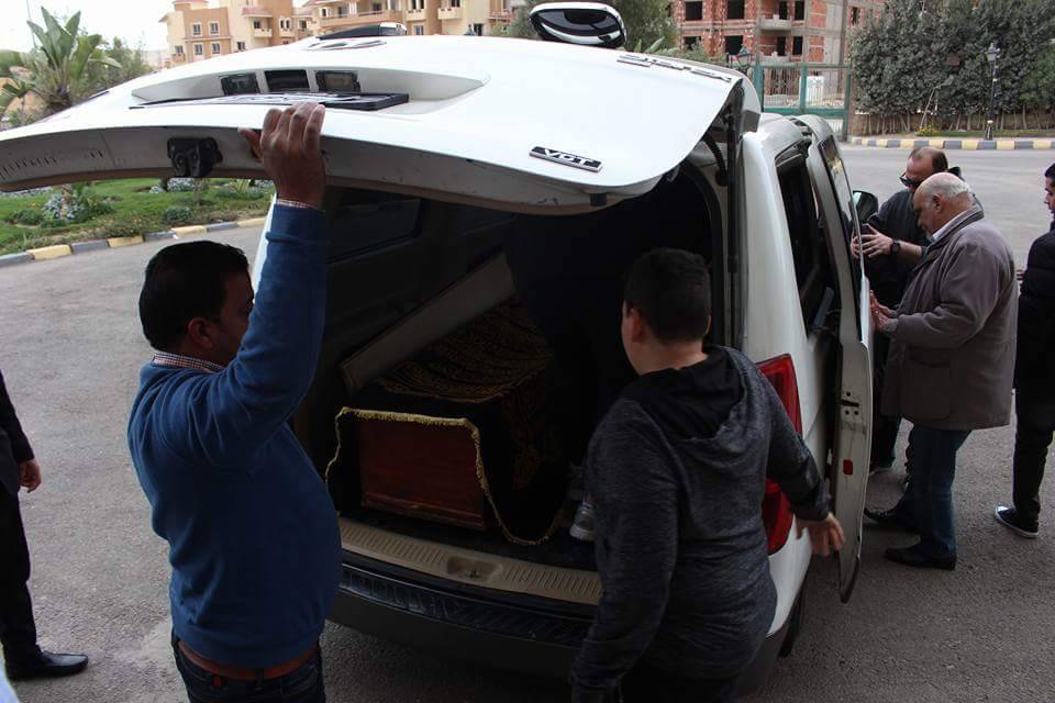 وبدت الممثلة المصرية متشحة بالسواد من دون مساحيق تجميل بينما احتلت الدموع عينيها، بملامح حزينة جداً، وفي حالة انهيار بسبب الفاجعة.