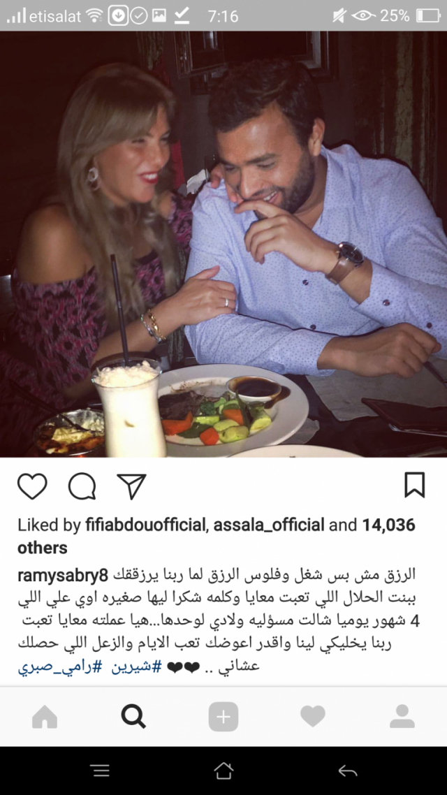 حرص الفنان رامي صبري على توجيه رسالة لزوجته شيرين، عقب تخطيه محنة سجنه لمدة أربعة أشهر بتهمة التهرب من التجنيد.
