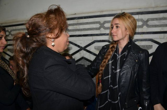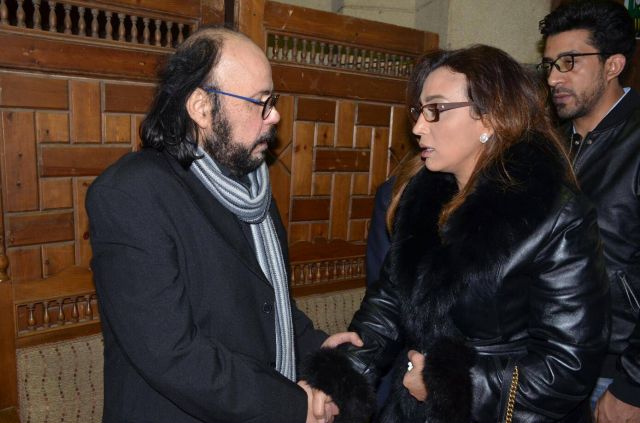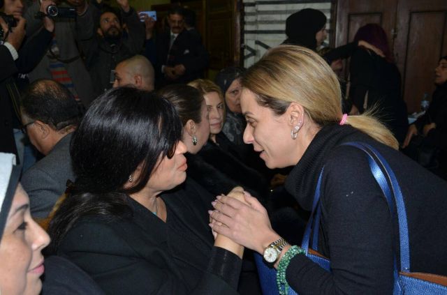 واستقبل زكريا الحضور بصحبة ابنه عمر وابنته ايمي ونجلة زوجته الفنانة هنا الزاهد، التي أثارت الجدل بضفيرة شعرها وبالتقاطها الصور التذكارية مع الحضور رغم حالة الحزن التي تسيطر على المكان، الامر الذي عرضها للكثير من الانتقادات.