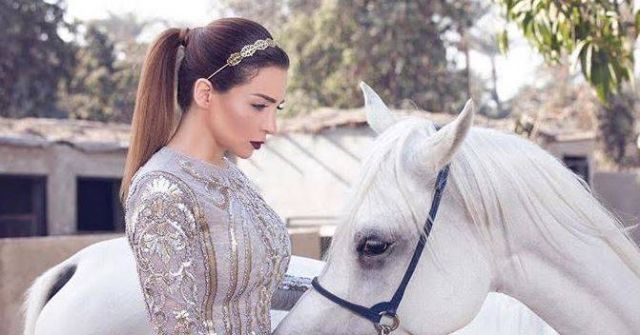 مي عز الدين أميرة من قصص الخيال مع فرسها الأبيض