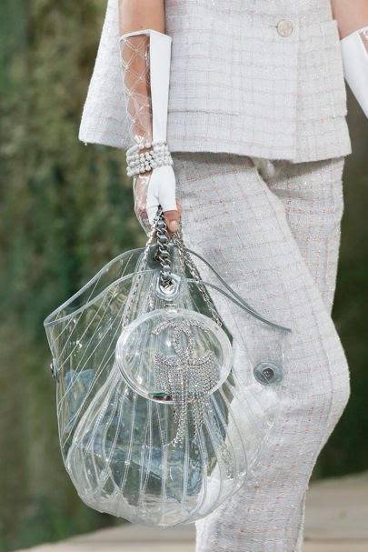 برزت التصاميم المصنوعة من مادة بلاستيكية شفافة في عالم الموضة هذا الموسم بشكل قوي. صيحة مميزة تخاطب الحس الجريء بداخل كل امرأة تبحث عن التجدد واختبار تجارب جديدة في عالم الموضة. لفتتنا فتاة Burberry بمعطفها المصنوع من الPVC، فهو قطعة أساسية ستحميك في الأيام الماطرة وتمنح إطلالتك لمسة من العصرية. كما أحببنا حقيبة شانيل الشفافة. احرصي على وضع أغراض جذابة بداخلها، ولا تنسي قارورة عطرك المميزة.