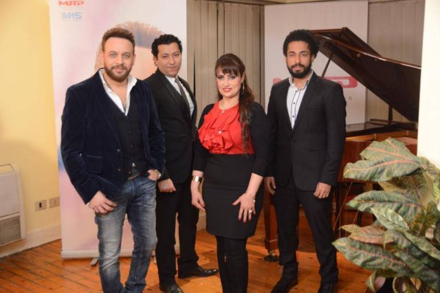 وقام الجميع بتقطيع التورتة التي تحمل صورة مصطفى قمر وأسماء الأصوات الجديدة، بالإضافة الى اسم اغنيته الجديدة.