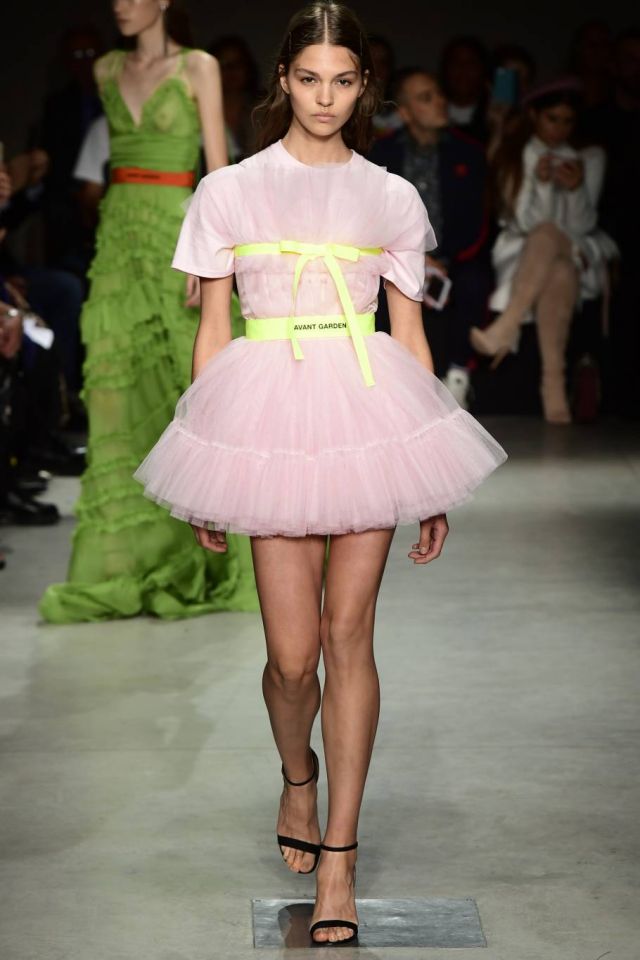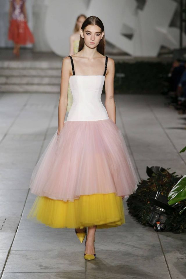 لطالما ميز حضور راقصات الباليه أنوثة خامات التول بألوانها الهادئة والحيادية، كالبيج والزهر الناعم والأزرق السماوي وغيرها من الألوان الهادئة التي تعكس براءة الراقصات وأنوثتهن. ولم تغب هذه الروح الرومانسية إذ ظهرت طبقات التول بألوانها الهادئة على العديد من المنصات منها Carolina Herrera وBrognano.