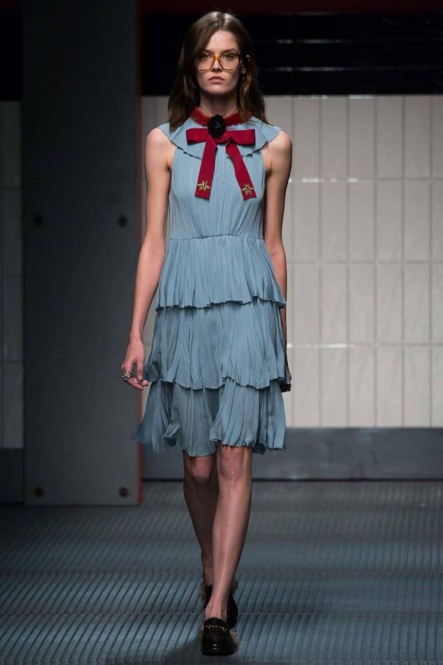 أحببنا إطلالتها التي نشرتها مؤخراً على حسابها الخاص في "إنستغرام"، حيث ارتدت فستاناً من توقيع غوتشي لخريف وشتاء 2015 باللون off white تمير بالجاذبية والرقي، يحمل عقدة كبيرة عند العنق، ويتميز بثلاث طبقات من الكشاكش، ويبلغ ثمن التصميم نحو 3,915 دولاراً أميركياً، وأكملت إطلالتها بجزمة طويلة سوداء.