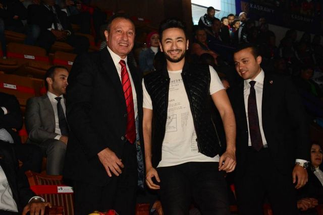 أحيا الفنان المصري حمادة هلال، حفل افتتاح البطولة الأفريقية لأندية الكرة الطائرة للسيدات بالنادي الأهلي في القاهرة، بحضور محمود الخطيب رئيس النادي.