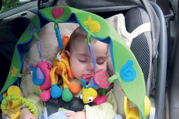يبدو الوقت الذي يمضيه الطفل في السيارة طويلاً بالنسبة إليه خصوصًا إذا كان ممن يحبون الاهتمام بهم طوال الوقت. ولحسن الحظ تتوافر في الأسواق ألعاب خاصة بالسيارة تلائم الطفل وتلهيه أثناء التنقل بالسيارة خصوصًا إذا كانت المسافة طويلة مما يخفف توتر الأم بسبب تذمر الطفل وأحيانًا بكائه.