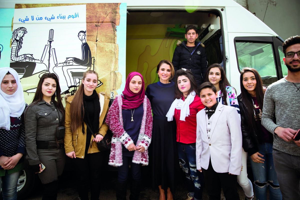 أطلقت الملكة رانيا العبدالله رئيسة مؤسسة نهر الأردن في غاليري رأس العين، المعرض المتنقل للتكنولوجيا المستجدّة التابع لمشروع مختبرات الابتكار الاجتماعي الذي تنفذه مؤسسة نهر الأردن بالتعاون مع اليونيسف.