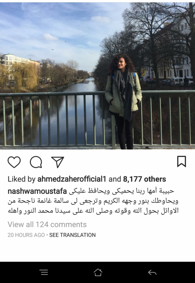 وعلقت نشوى على الصورة بكلمات مؤثرة وكتبت: "حبيبة أمها ربنا يحميكي ويحافظ عليكي ويحاوطك بنور وجهه الكريم وترجعي لي سالمة غانمة ناجحة من الأوائل بحول الله وقوته، وصلى الله على سيدنا محمد النور وأهله".