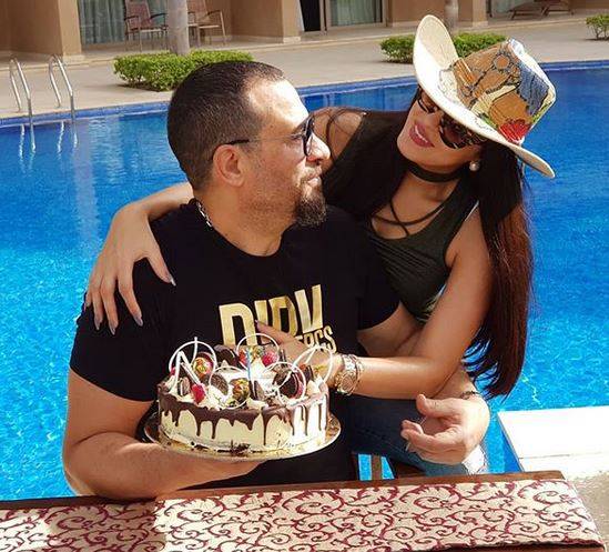 وأعاد المصري نشر الصور التي نشرتها زوجته على صفحته على "انستغرام" وظهر فيها بغاية السعادة والراحة وهو يحمل في يده قالباً من الحلوى، بينما تحتضنه زوجته، وبدا عليهما الانسجام والحب.