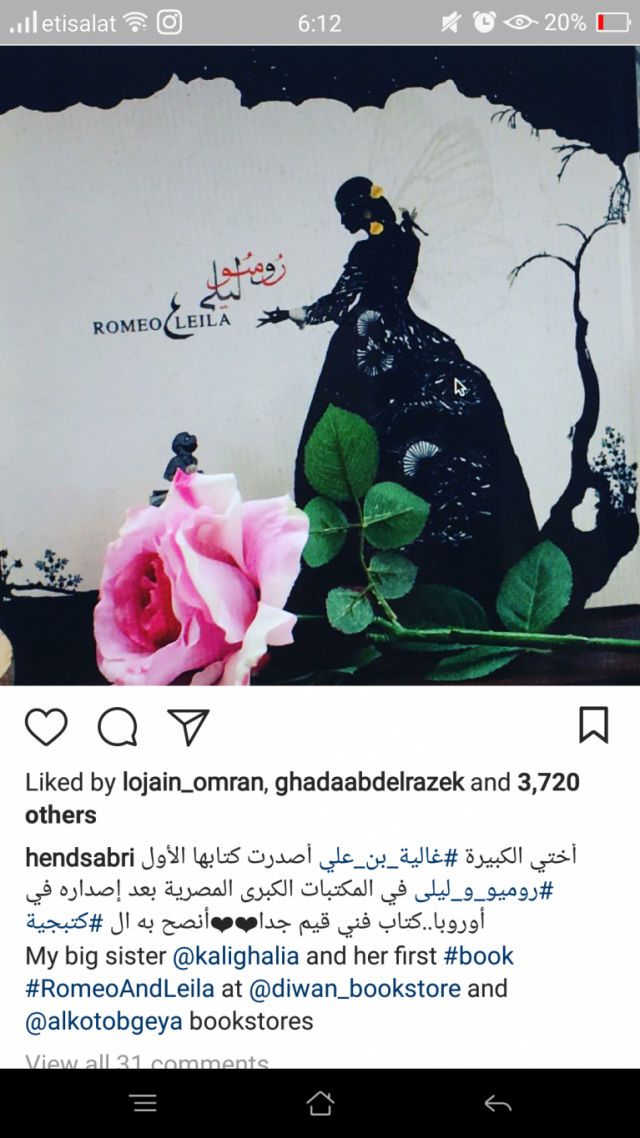 وكانت النجمة التونسية هند صبري هنأت غالية على كتابها الجديد، من خلال صورة نشرتها للكتاب عبر صفحتها الرسمية على "إنستغرام"، وكتبت عليها: "اختي الكبيرة غالية بن علي اصدرت كتابها الاول روميو وليلى، في المكتبات الكبرى المصرية بعد اصداره في اوروبا، كتاب فني قيم جدا" .