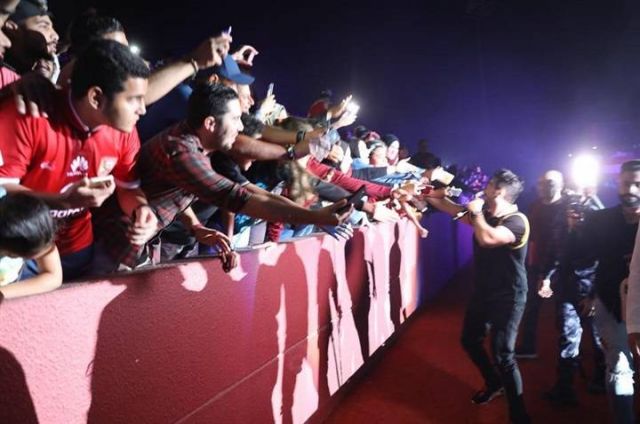 وحرص النجم المصري كعادته على التقاط الصور التذكارية مع الجمهور، الذي حضر الاحتفالية الخاصة بمرور 50 عاماً على تأسيس "نادي الفجيرة".