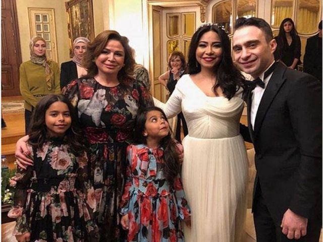 أثارت النجمة المصرية إلهام شاهين ضجة كبيرة بعد ارتدائها الفستان المطبوع بنقوش "كلاب" من جديد خلال حضورها حفل زفاف النجمين شيرين عبد الوهاب وحسام حبيب، الذي أقيم السبت.