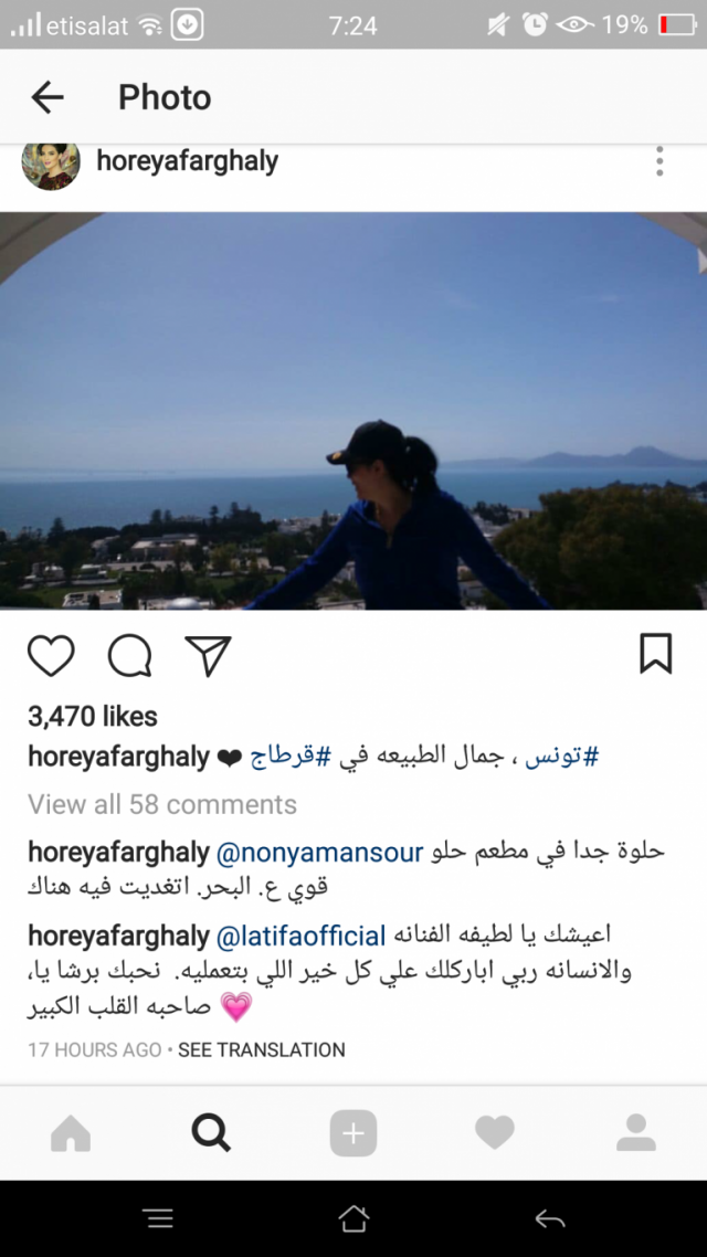 ووجهت رسالة للفنانة التونسية لطيفة قائلة: "اعيشك يا لطيفة الفنانة والإنسانة ربي اباركلك علي كل خير اللي بتعمليه نحبك برشا ..يا صاحبة القلب الكبير".