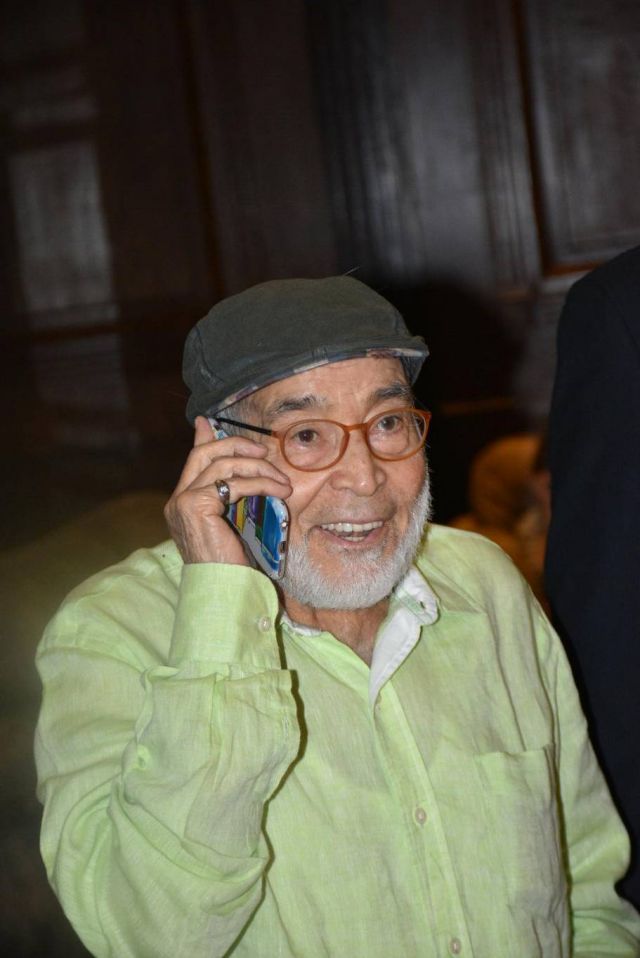 وظهر النجم القدير وهو يسير على عكاز، وبدت على ملامحه التي سيطر عليها الشعر الابيض، الراحة والسعادة، مع ظهور علامات التقدم في السن من خلال التجاعيد التي ملأت وجهه إلا انه لا يزال يحافظ على ملامحه التي يحفظها المشاهدين من أيام افلامه المميزة بالأبيض والأسود.