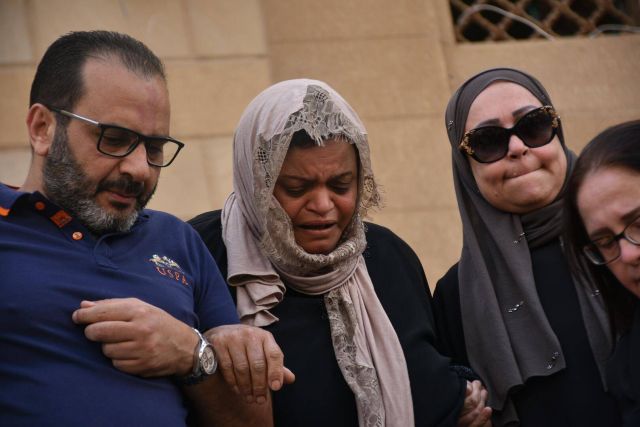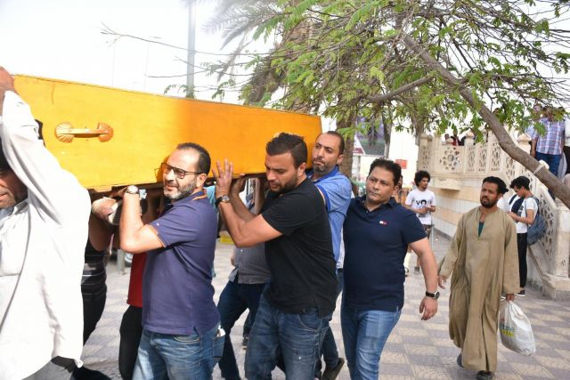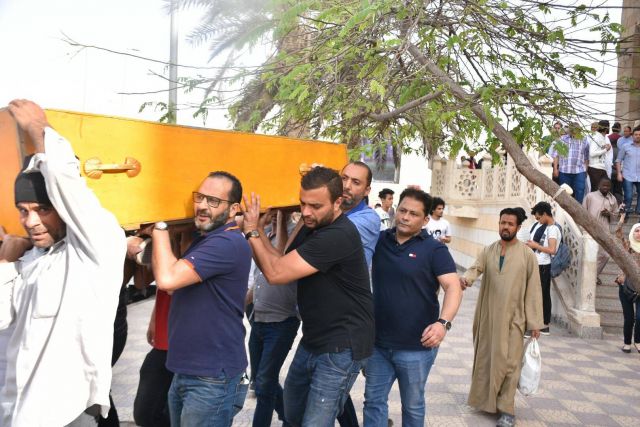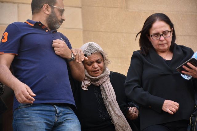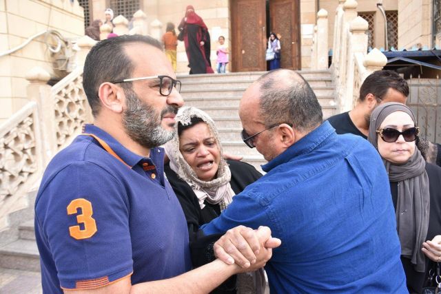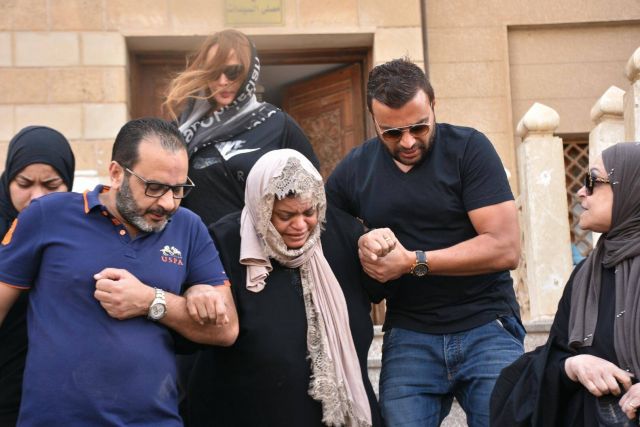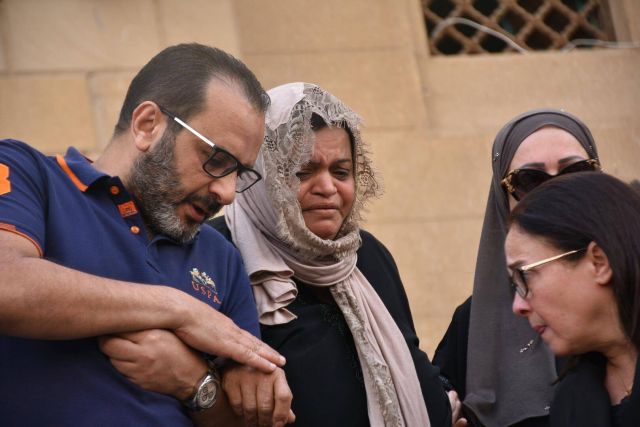 بالصور - رامي صبري يحمل جثمان والد شيرين... ووالدتها تنهار بجنازته