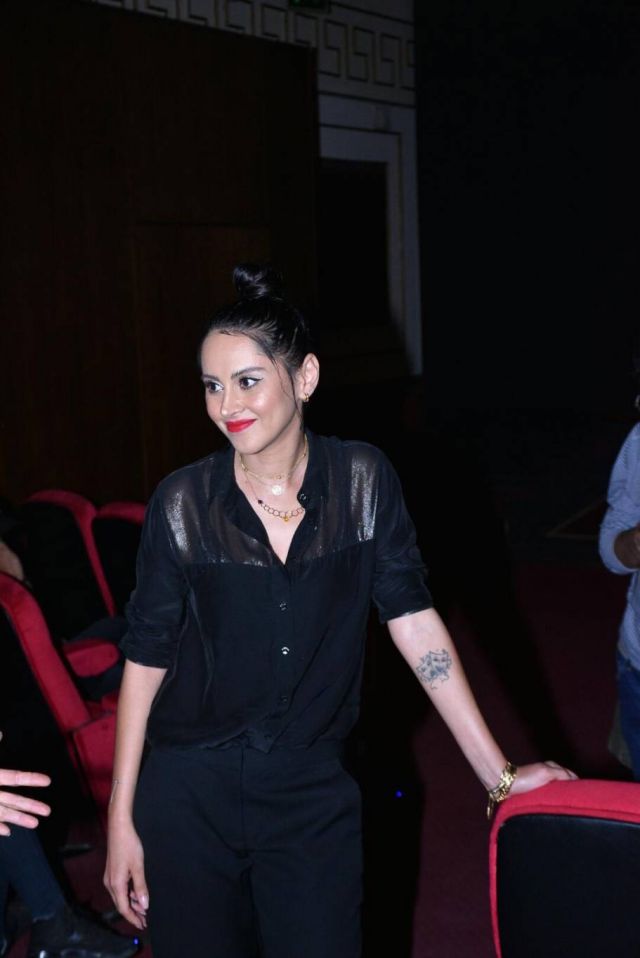 وحضرت بصحبة المنتجة ماريان خوري ابنة شقيقة المخرج الراحل يوسف شاهين، وأطلت بملابس "كاجوال" عبارة عن قميص ناعم وبنطال باللون الأسود وقامت برفع شعرها بالكامل مع مكياج يومي ناعم، وأضافت الى اطلالتها بعض الحلى من الذهب.