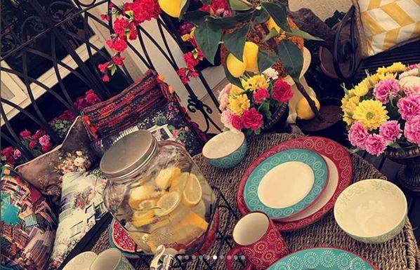 وعبرت بولند عن دهشتها بعد رؤية الشرفة المزينة بطريقة مميزة بالورود والوسادات والكراسي الحديدية".