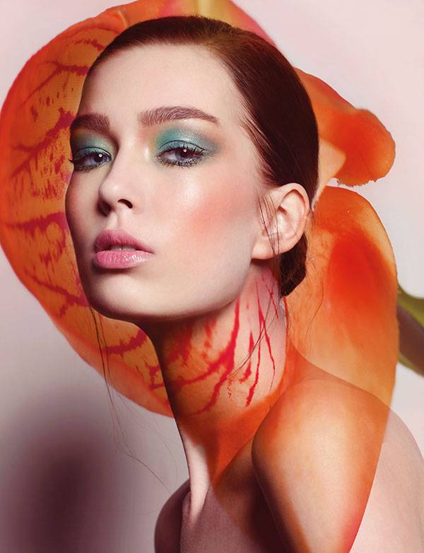 باقة ربيعية مزهرة بالألوان الجميلة مع ظلال عيون نابضة وطلاء أظافر أصفر وفيروزي. اعتمدي الألوان الحيوية!
