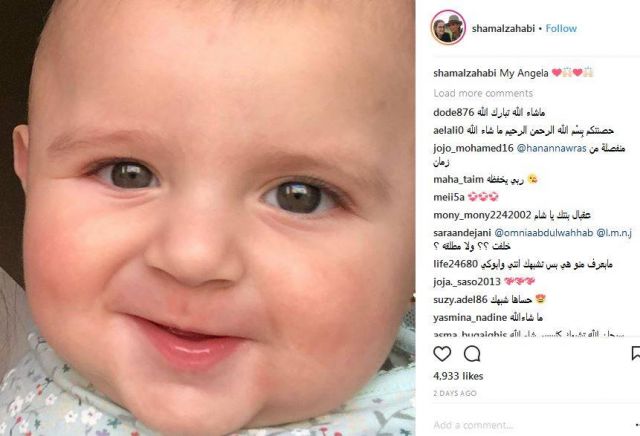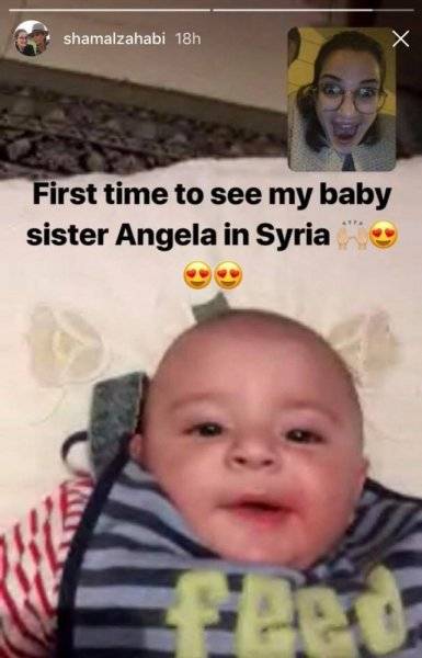وشاركت صورة الطفلة على صفحتها وعلقت عليها: My Angela، ونشرت أيضاً قبلها مقطع فيديو قصير على خاصية "الستوريز" وكانت تلاعب الطفلة الصغيرة، وعلقت عليه انها المرة الاولى التي تقابل فيها أختها أنجيلا.