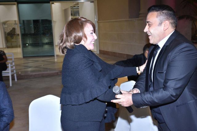 أحيا المطرب السوري مجد القاسم حفل ختام المؤتمر الدولي لأمراض الصدر والتغذية لدى الأطفال، بحضور الفنانة القديرة لبنى عبد العزيز، والتي ظهرت بإطلالة باللون الأسود ووضعت ماكياج قوي، وبدت بشوشة وأصغر سناً.