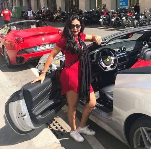ونشرت الممثلة الشابة عبر حسابها على تطبيق "إنستغرام" صور إطلالتها بالقرب من سيارة رياضية فخمة، بفستان أحمر قصير وضيق.