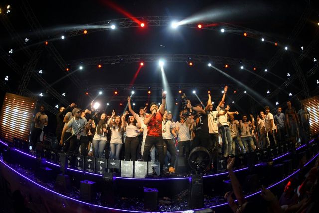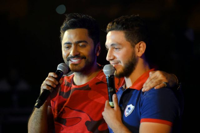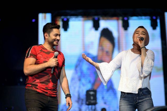 بالصور - تامر حسني يثير بلبلة بإطلالته.. وهذا ما فعله على المسرح