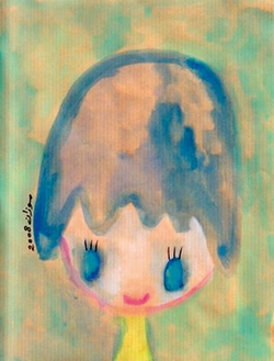 - ولكن رسومك أيضاً لا تحتوي سوى وجوه أطفال أو مشاهد طفولية. لماذا لا تختارين سوى الطفولة كـ «ثيمة» أساسية في لوحاتك؟