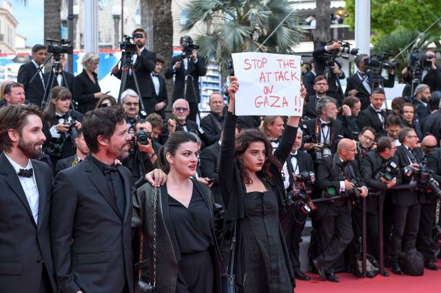 بالصور- ممثلة عربية ترفع الصوت في كان: اوقفوا الهجوم على غزة