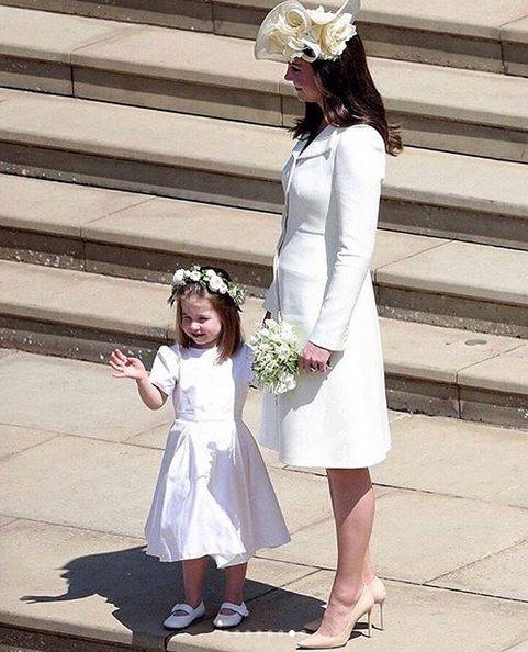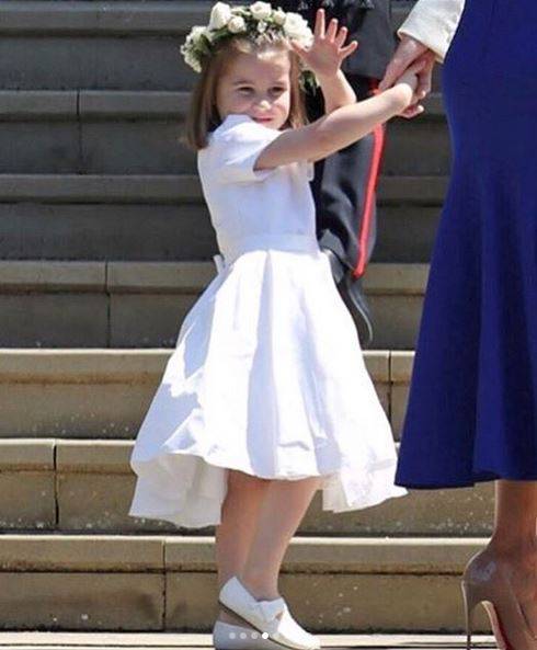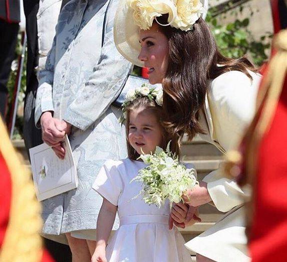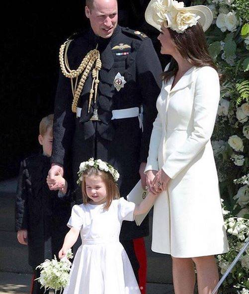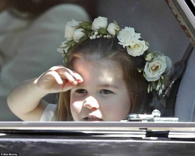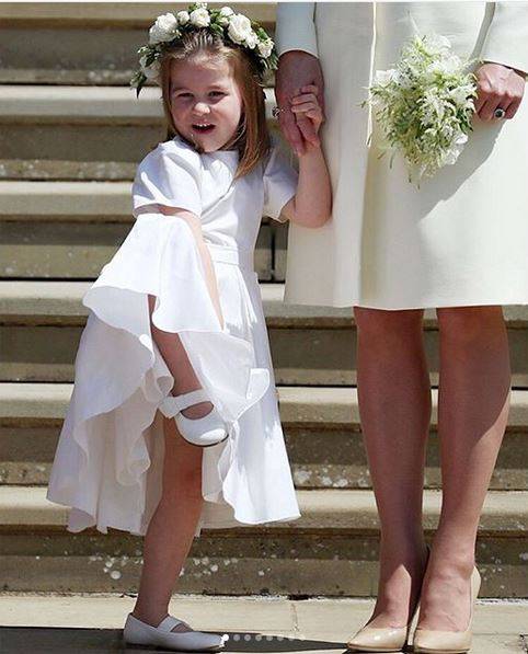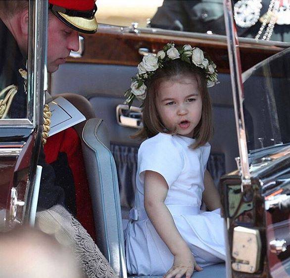وقامت ابنة الأمير ويليام وكايت ميدلتون، دوقة كامبريدج، بالتلويح بحماس للحشود في حفل الزفاف الملكي وأخرجت لسانها، أمام كاميرات الصحافيين وهي تقترب بالسيارة من سانت جورج، ووقفت بثقة الأمراء أمام الجمهور البريطاني، فيما وقف شقيقها الأمير جورج (4 سنوات)، بخجل مختبئا وراء والده.