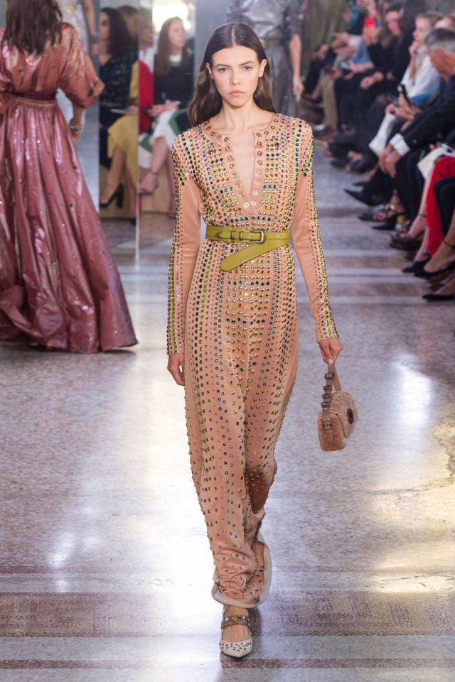 وإختارت إطلالة عصرية بلمسة شرقية من مجموعة Bottega Veneta لربيع 2018 شبيهة بالعباية، باللون الزهري المائل الى النيود، مرصع بالدوائر المعدنيّة الملوّنة، ويبلغ ثمنه نحو 19,400 دولار أميركي.