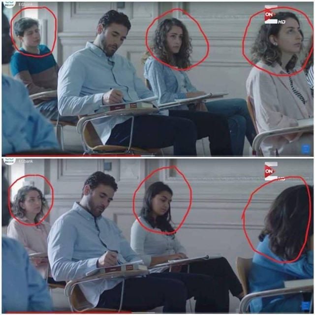 تداول عدد كبير من مستخدمي "فايسبوك" مشهداً من مسلسل "أبو عمر المصري" يكشف عن خطأ كبير وقع فيه صناع المسلسل، حيث ظهر عز في المشهد الذي لم تتعد مدته الدقيقة الواحدة في لقطتين ظهر فيهما مجموعة من الممثلين بشكل مختلف في كل لقطة رغم أنه مشهد واحد.