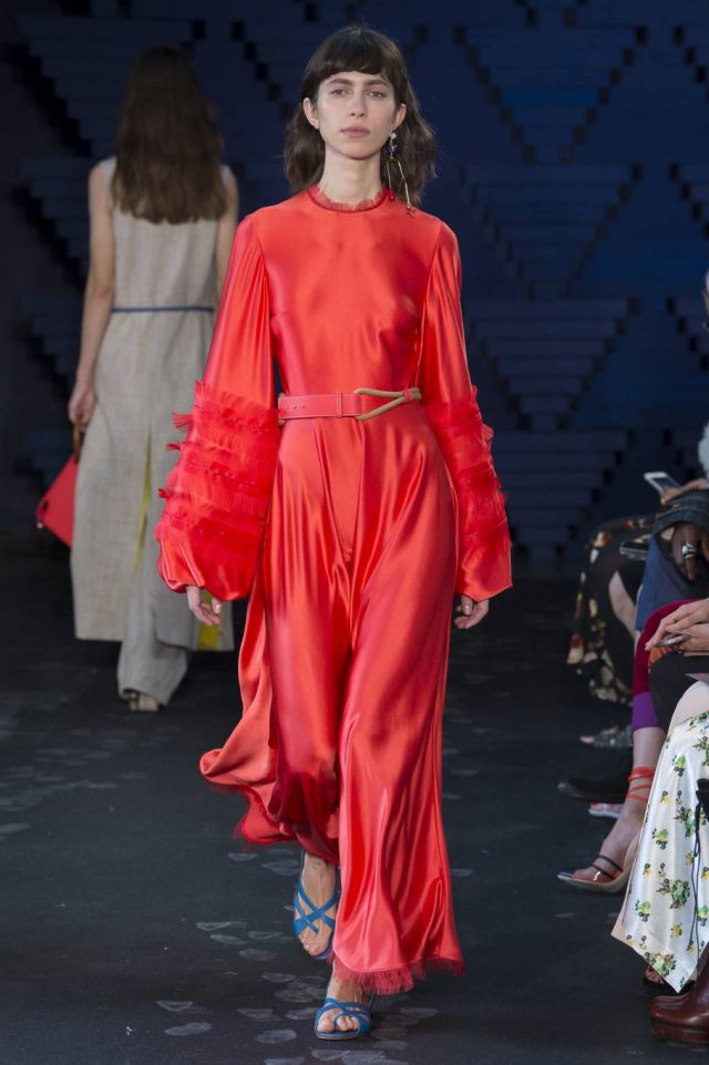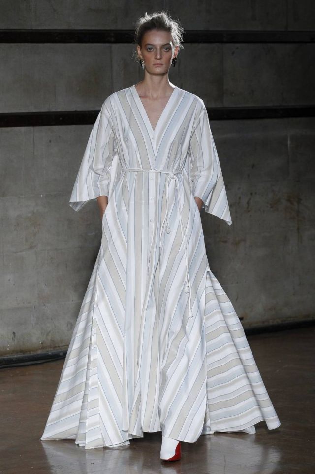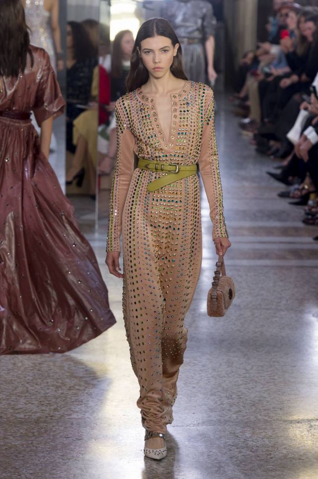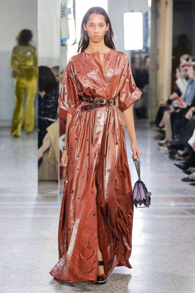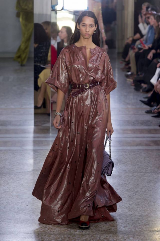 لم تتخلَّ الإطلالات الرمضانية عن رقيها، ولكنها باتت تتنوع بين تلك الحديثة والأنثوية والمرحة والأنيقة المتجددة. لذا اخترنا لك من الإطلالات المتجددة فستاناً طويلاً من عرض BOTTEGA VENETA بقصّة مستوحاة من أسلوب العباءة، ميّزته خامته اللمّاعة ولونه البرونزي المعدنيّ والحزام الجلديّ للمسة من الجرأة والقوة.