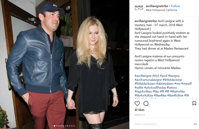 ونشرت أفريل عبر حسابها على "إنستقرام" مجموعة من الصور التي جمعتهما في عدد من الأماكن.