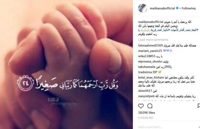 ونشرت على تطبيق "انستغرام" صورة ليد أم مع طفلها، وعلقت عليها: "الله يرحمك يا أمي يا حبيبتي ويحسن اليكي في الجنه ونعيمها باْذن الله، الجنه تحت أقدام الأمهات يا رب اشفيني وقويني".