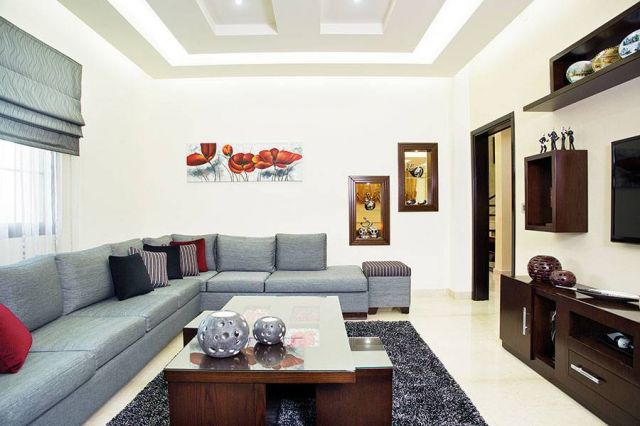 مثلاً الجدار الفاصل بين قاعة الاستقبال وغرفة الجلوس، تخلّلته فجوات نطل منها على الجلسة التي تحافظ على حميميتها في الوقت نفسه.
