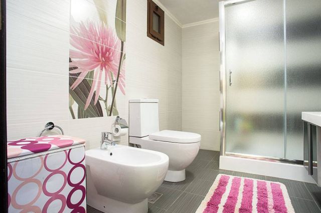 غرفة الابنة من الخشب بلونه الطبيعي تدرّجت فيها ألوان الزهر العديدة وصولاً إلى البنفسجي في درف الخزائن والأدراج. وتبع كل غرفة حمام خاص بها متناسق من حيث الألوان والطراز.