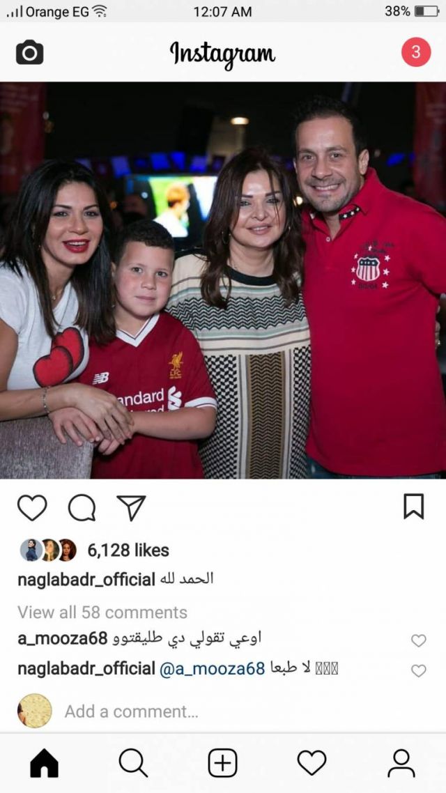 حالة من الإستياء إنتابت الفنانة نجلاء بدر بعد أن نشر البعض صورة تجمعها بزوجها وابنه من زوجته الأولى وسيدة اعتقد البعض أنها طليقته، ولم يترددوا في كتابة تعليقات لها يتساءلون عن كيفية الإلتقاء بطليقة زوجها.