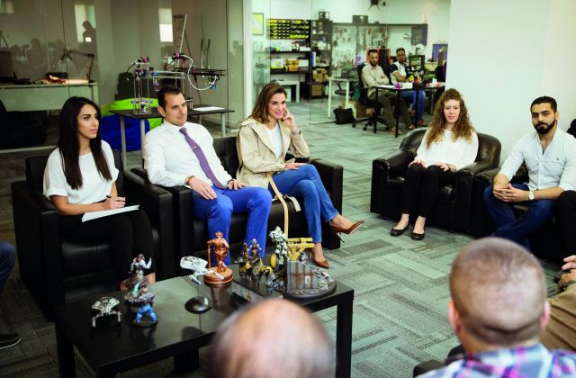 زارت الملكة رانيا العبدالله شركة مكسد دايمنشنز (Mixed Dimensions) المتخصصة في مجال الطباعة الثلاثية الأبعاد وصناعة ألعاب الفيديو وبرامج CAD. وجالت في مكاتب الشركة وتبادلت الحديث مع الموظفين.