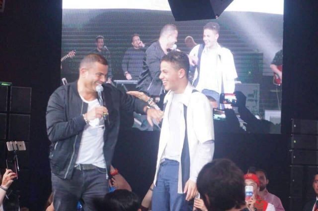 فيديو يثير ضجة - عمرو دياب يغني لدينا الشربيني في روسيا.. ما رد فعلها؟ وماذا فعل ابنه عبد الله؟