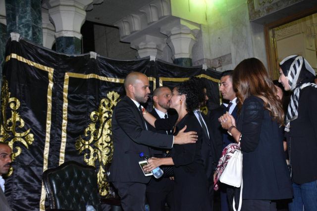 بالصور- يسرا تغيب عن عزاء والد المطرب "أبو" .. والمطرب الشاب يثير الجدل بما فعله