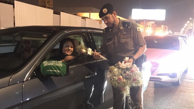 بالصور - اللحظات الأولى للمرأة السعودية في قيادة السيارات... لن تصدقوا كيف تصرف شرطيو المرور