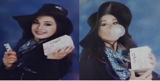 وبدت فيها بشكل قريب جداً من شكلها الحالي. وتعليقاً عليها كتبت: "الإعلان حياتي. علك شكلوس ".