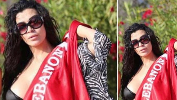 شجعت النجمة اللبنانية نادين الراسي منتخب بلادها لكرة السلة على طريقتها، بإطلالتها بملابس البحر، متشحةً بشعار الفريق.