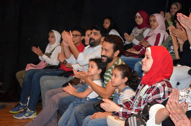 وأطلت زوجة حسين بأناقة بالحجاب، بينما اخارت ابنتاه الجينز، وحرصت الأسرة على التقاط الصور مع أبطال العمل المسرحي.