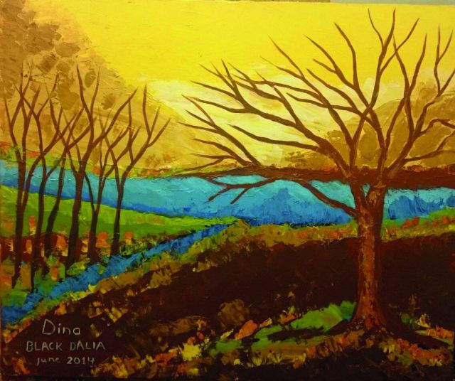 الطبيعة والإنسان والأشياء والأرض والسماء، البهجة والنظرة الواسعة... كلها حاضرة في لوحة دينا: «لأن الحياة مليئة بكل أسباب اللون، بكل أشكال التعبير. وكي تكون فاعلاً معبراً في لوحتك، عليك سلوك خطوات نظراتك، تتبعها كيف تمشي وكيف تحلق وتطير في فضاء الحياة».